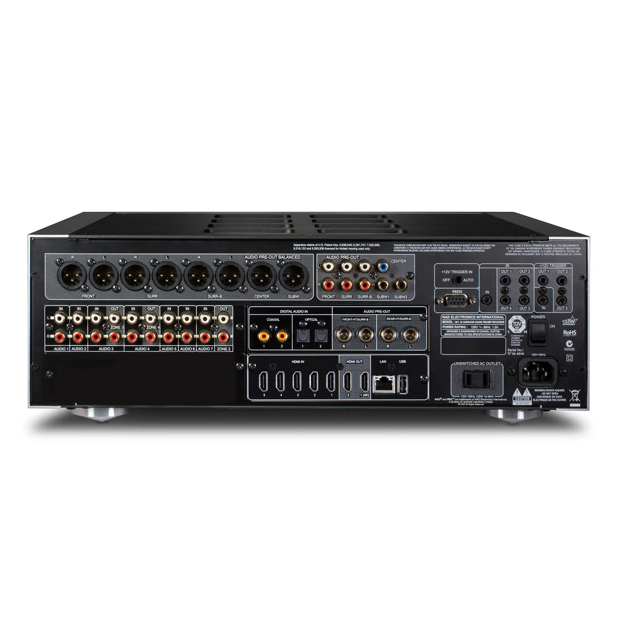 The M17 V2i is NAD’s reference AV preamp/processor, designed for high-end “separates” home theater systems where maximum performance and flexibility are required. Unlike a receiver, it provides processing and control only, requiring external power amplifiers (such as the M28) to drive speakers.